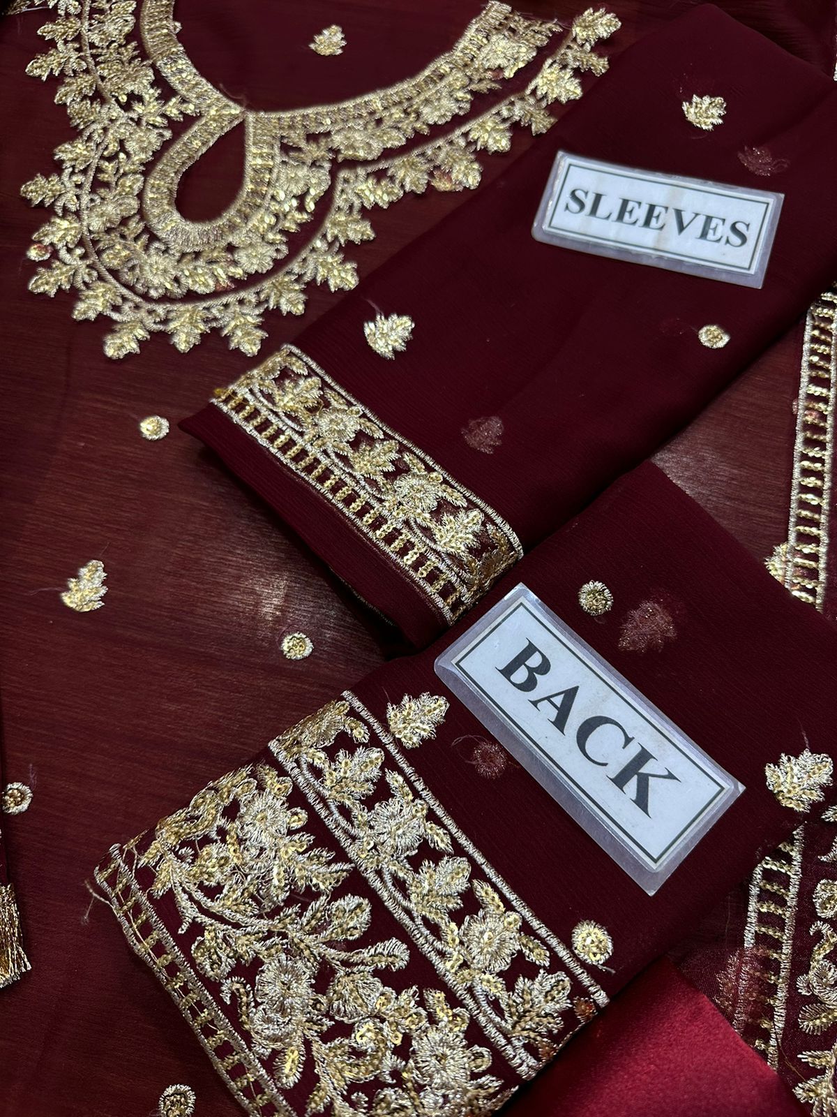 Elegant Sequin Embroidered Chiffon Suit – Unstitched 3-Piece